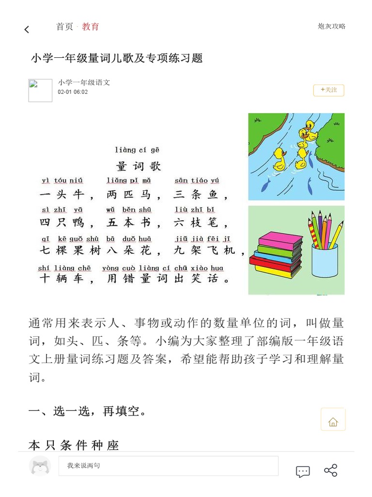 小学一年级量词儿歌及专项练习题教育频道手机搜狐 Pdf